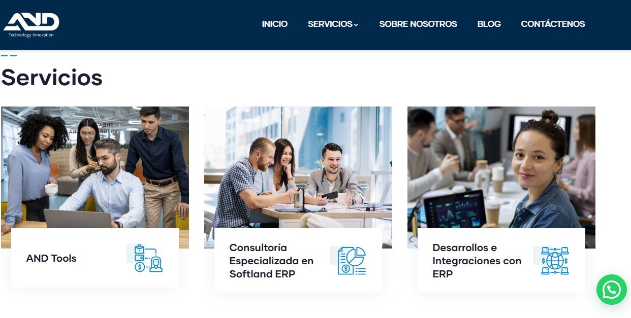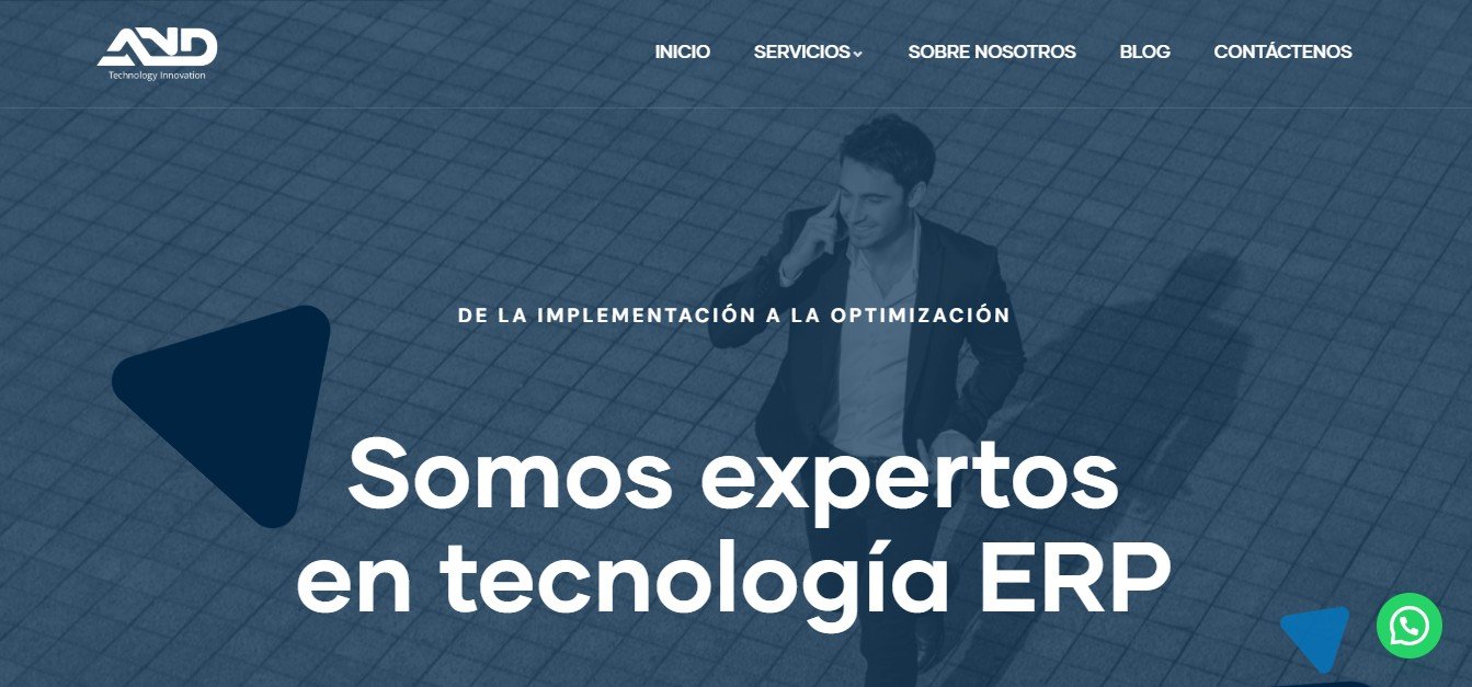 - Arquitectura de contenidos orientada a destacar servicios, soluciones ERP y casos de éxito